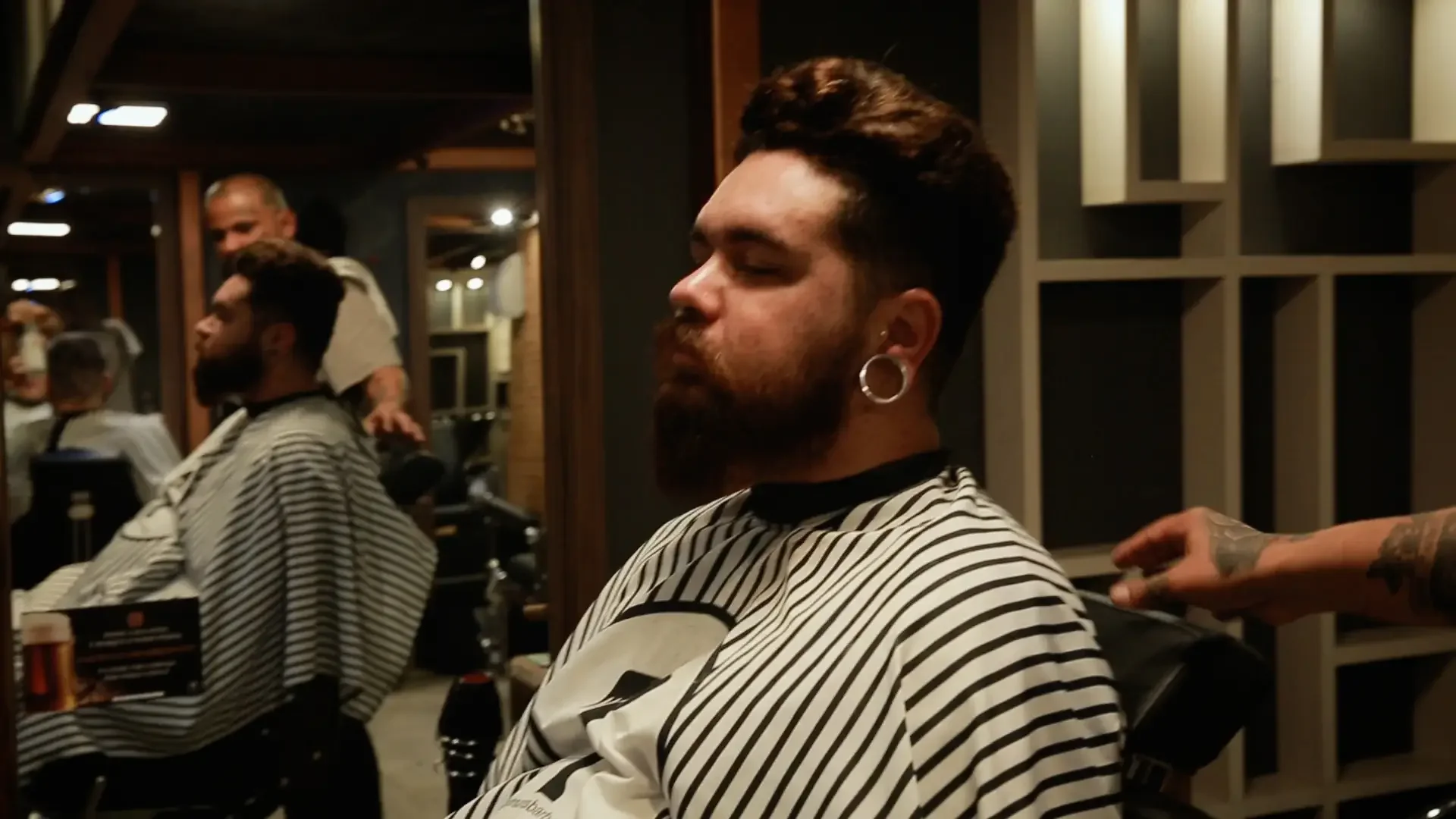 E pra completar, o Filipe mandou um corte de cabelo com o fade bem baixo, começando na zero mesmo. Isso dá um maior destaque à barba. Ela ganha uma aparência de mais volume, mesmo ainda estando em fase inicial de crescimento.