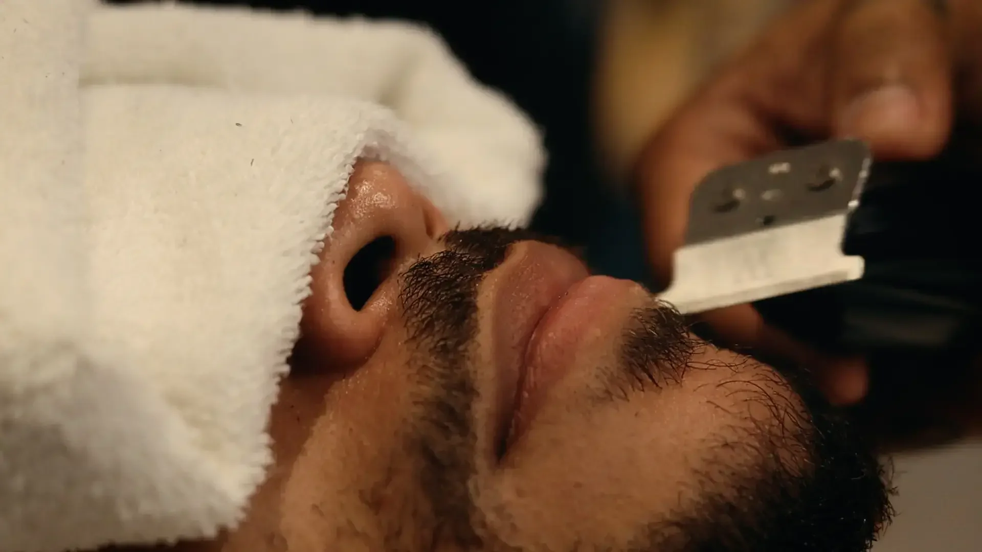 Por falar em bigode bem aparado, não pode falta uma bela aparada nos fios da barba, começando com uma Esfoliação para abrir bem os poros e evitar pelos encravados.