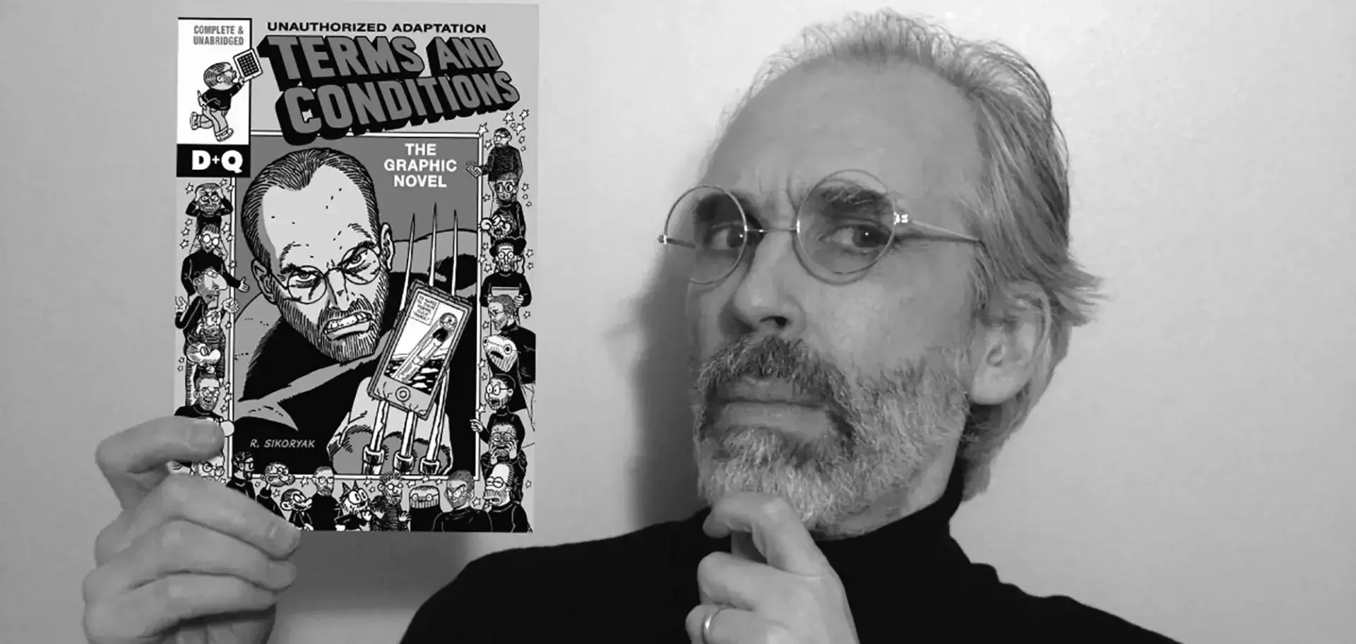 “É o documento recordista de downloads e, ao mesmo tempo, um dos mais ignorados no mundo. Meio que virou uma piada aqui nos EUA… Ninguém lê porque é muito longo, muito tedioso, repetitivo e bem o que se espera de advogados”, conta o quadrinista, via Skype, de sua casa em Nova York.