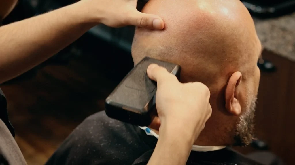 Barba aparada com a máquina zero sobrevoando os pelos como se estivesse seguindo uma régua.